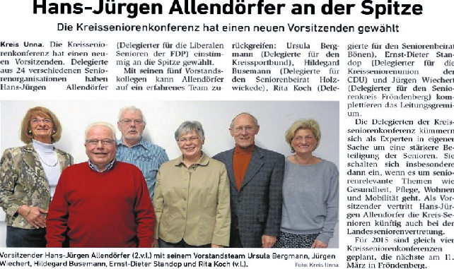 Ende 2012 hat der Vorstand der Landesseniorenvertretung NRW entschieden, dass die Kreisseniorenkonferenz Kreis Unna ein Vollmitglied in der Landesseniorenvertretung NRW wird und somit auch ein Stimmrecht in der entsprechenden Mitgliederversammlung haben wird.
